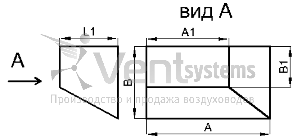 Прямоугольный стальной оцинкованный переход с фланцами (длина перехода подбирается автоматически, исходя из рекомендованных параметров)